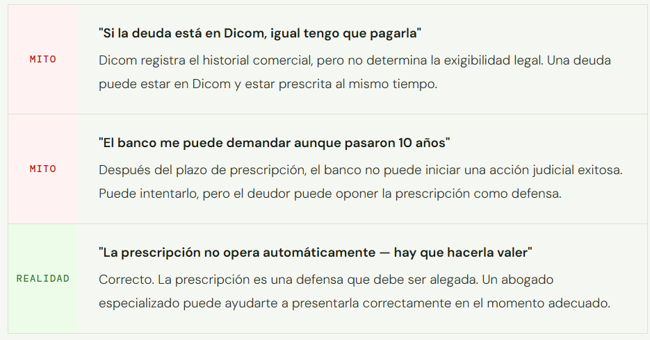 ¿Significa eso que ya no existe en el Boletín Comercial o en Dicom? No necesariamente — eso requiere un proceso adicional. Pero sí significa que nadie puede obligarte legalmente a pagarla. Y en la práctica, muchas personas siguen realizando pagos o acuerdos sobre deudas que ya cruzaron ese umbral, sin saberlo.